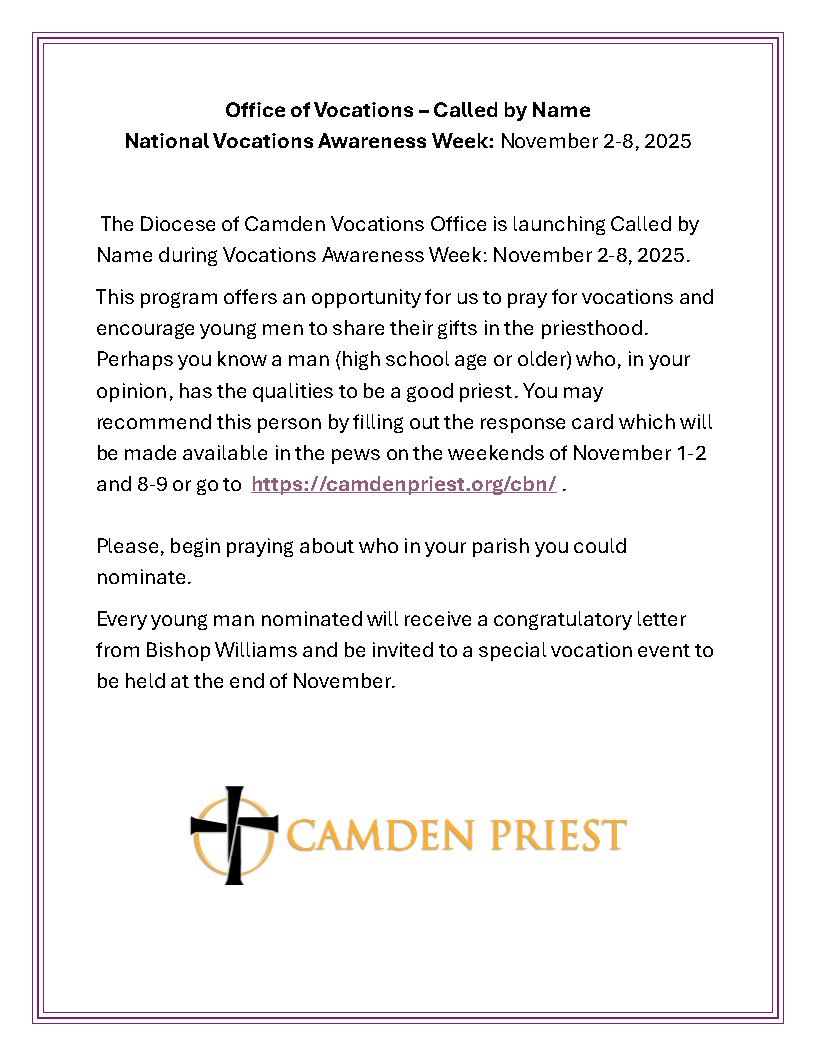 Click here to download a parish registration form. The file is set-up so that you can type in your information. Once completed you can drop it off at the parish office, put it in the collection basket or attach it to an email and send it to