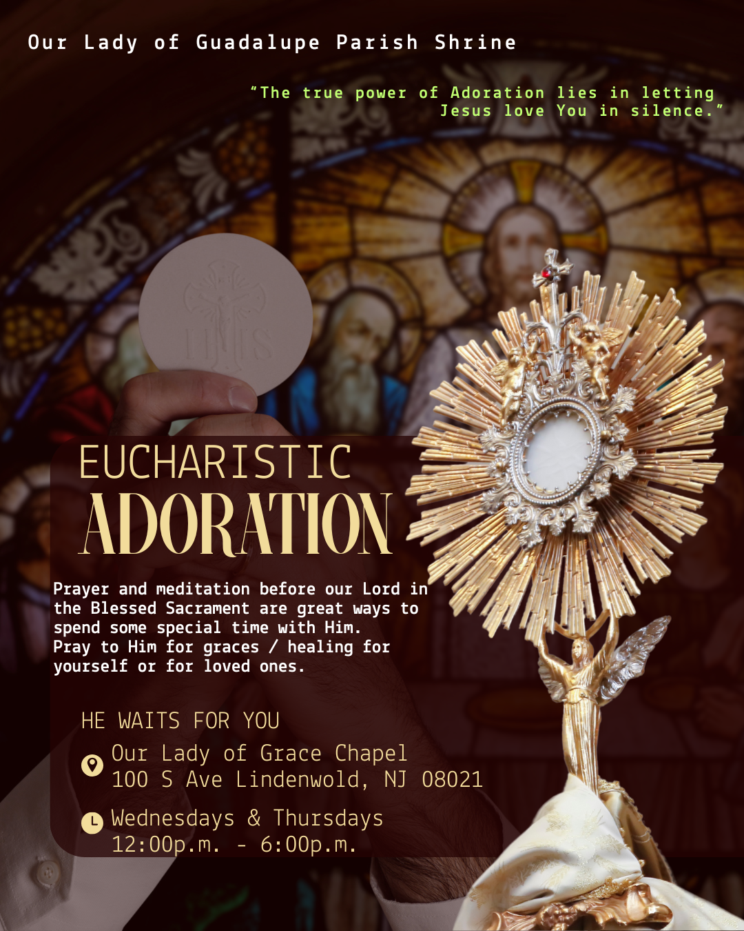 The Diocesan Shrine of Our Lady of Guadalupe is a place of pilgrimage under the patronage of Our Lady of Guadalupe as the patroness of the unborn. We offer daily confession, morning and evening Mass, weekly adoration and the opportunity for the faithful to have their prayer intentions remembered in a special Mass of Remembrance on the 12th of every month.